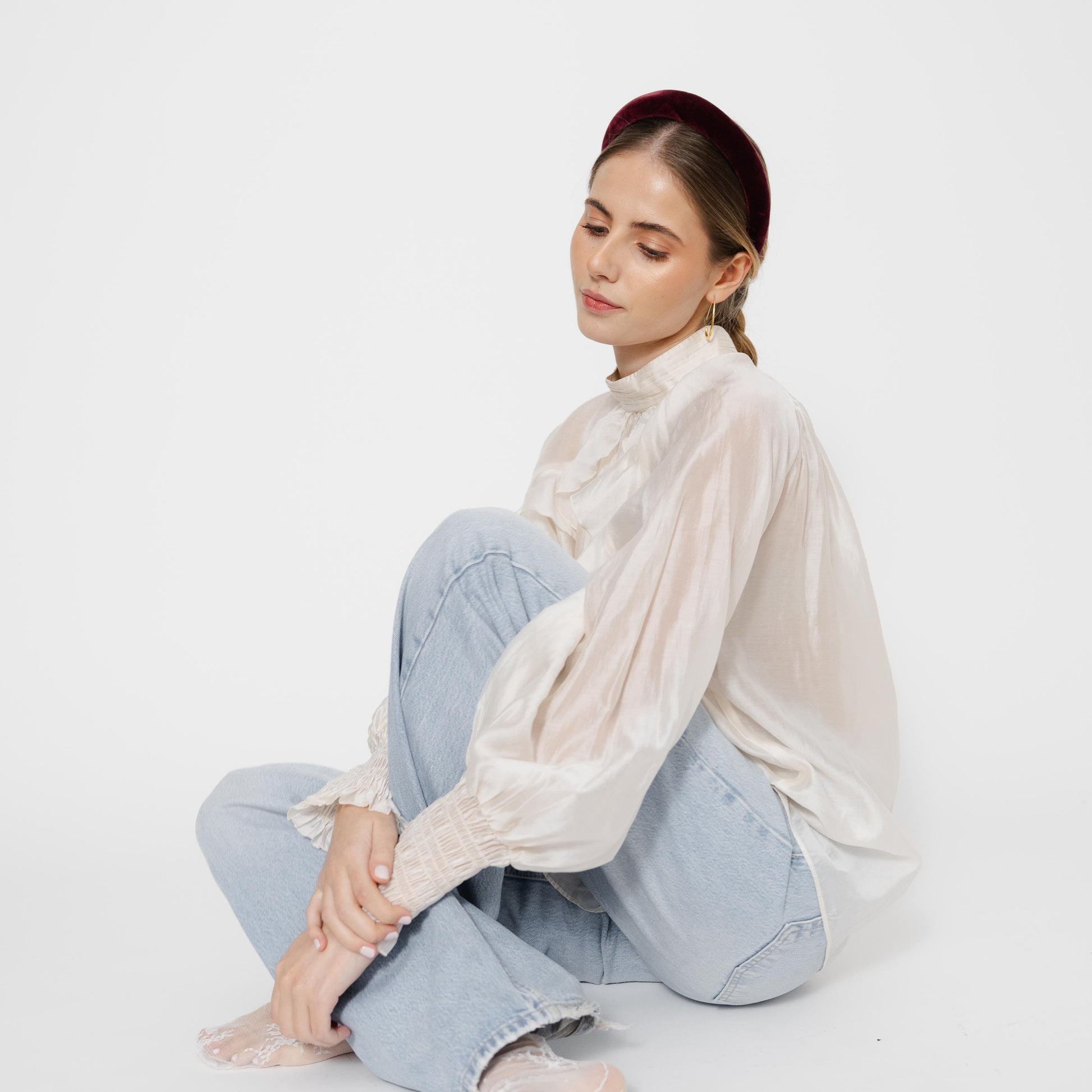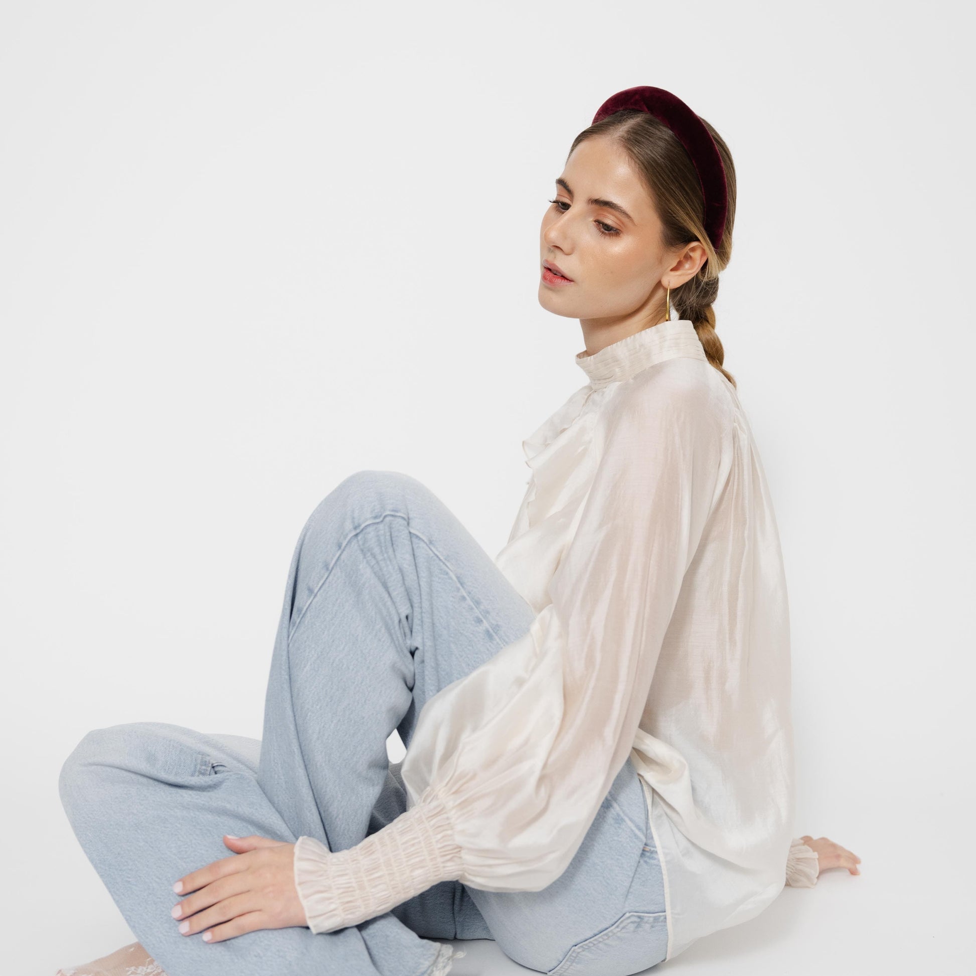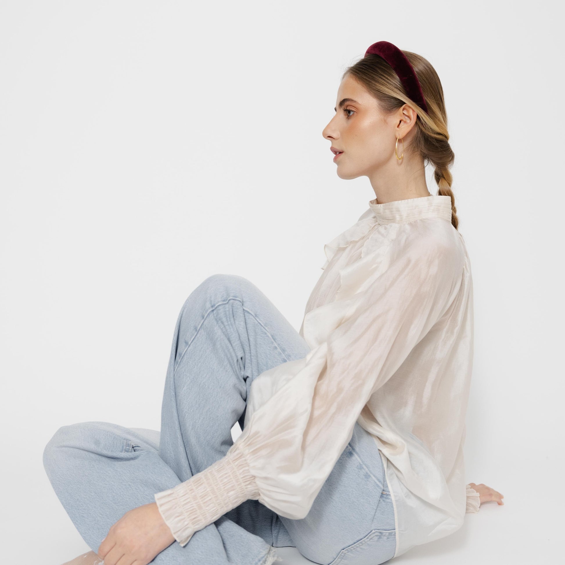 Bandolete Kate em veludo bordeaux.