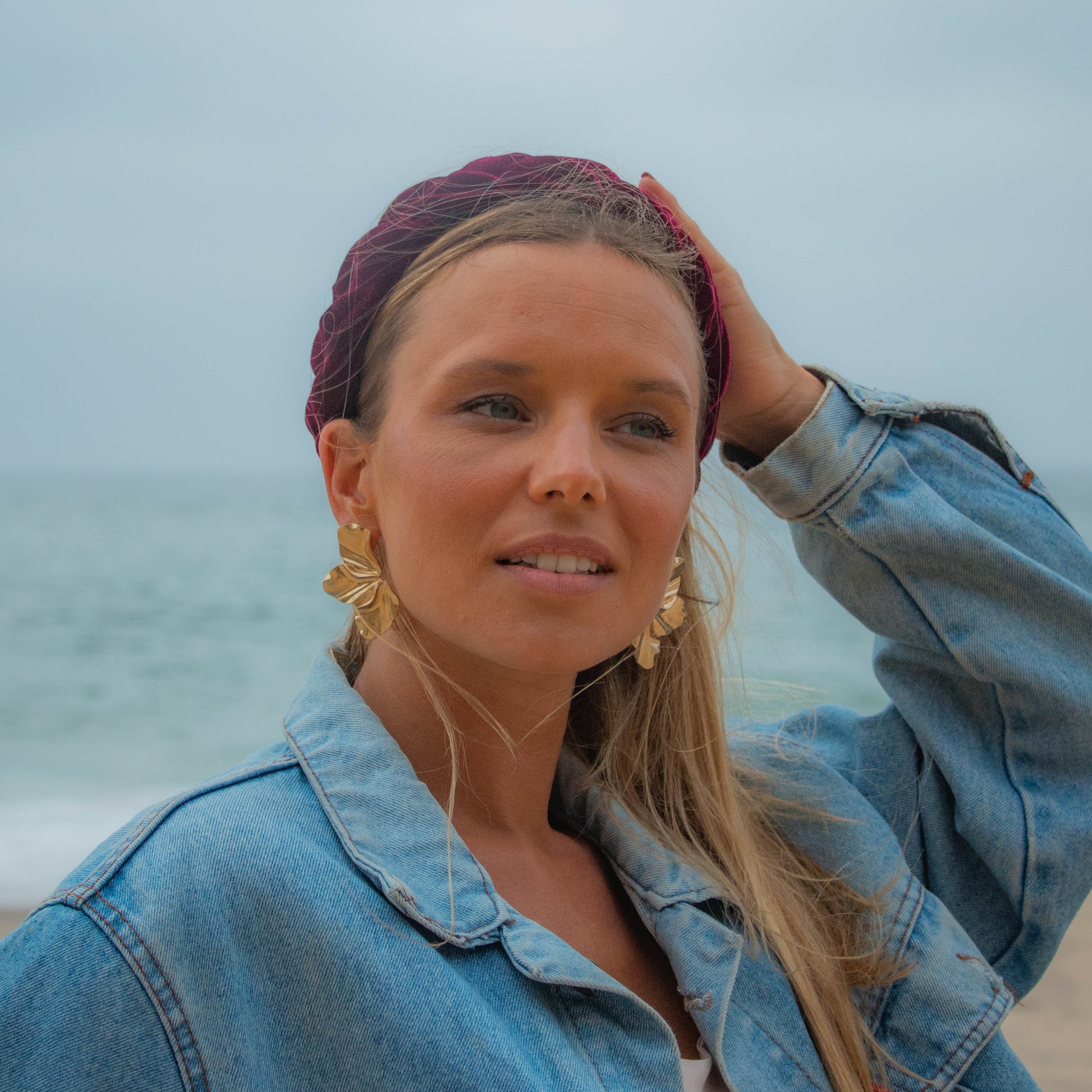 Bandolete formato trança em veludo na cor bordeaux.