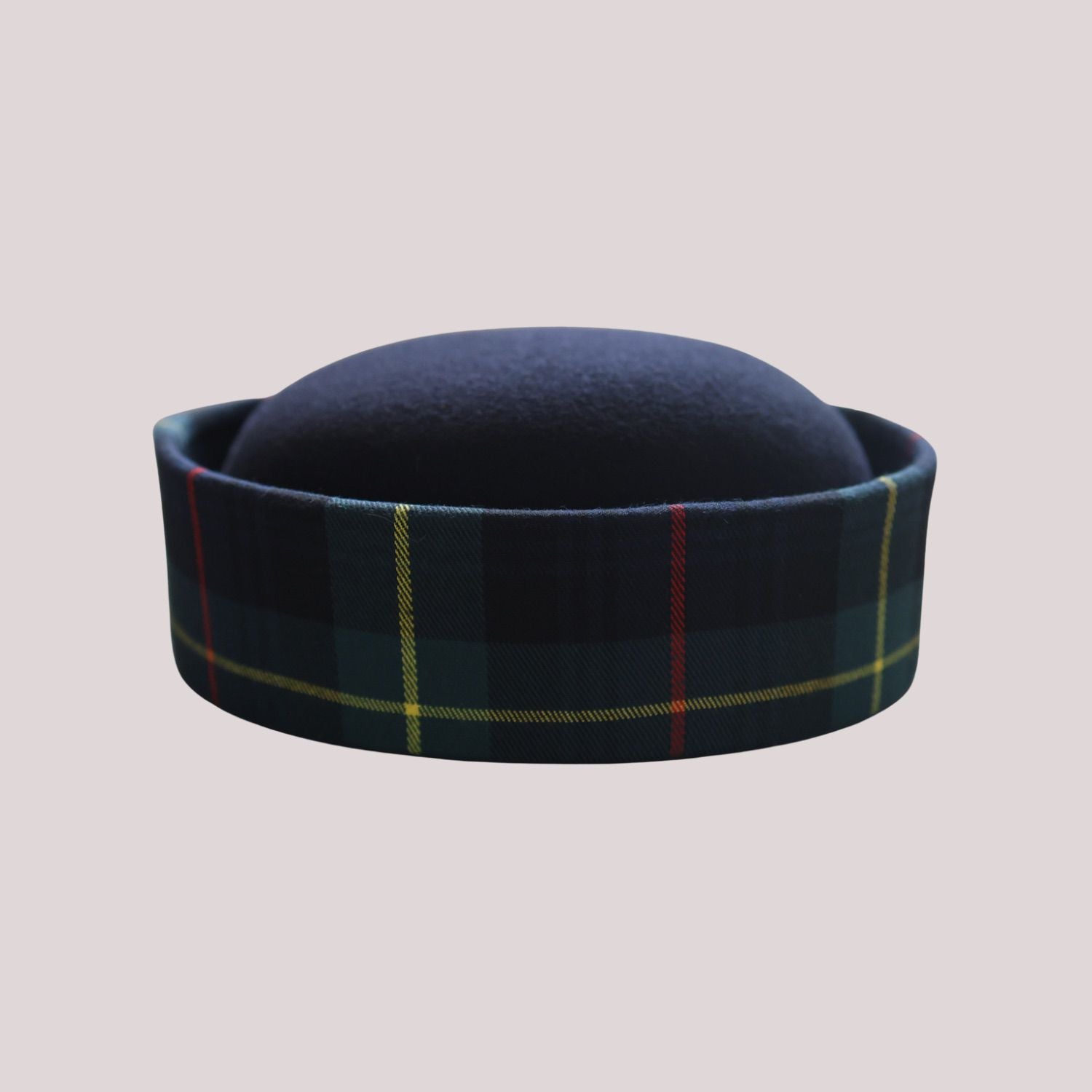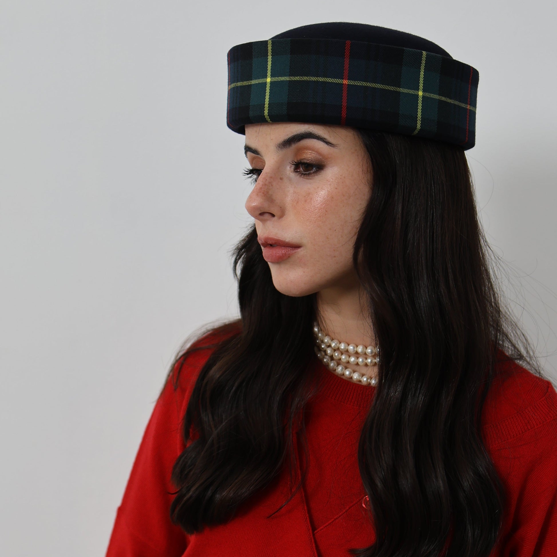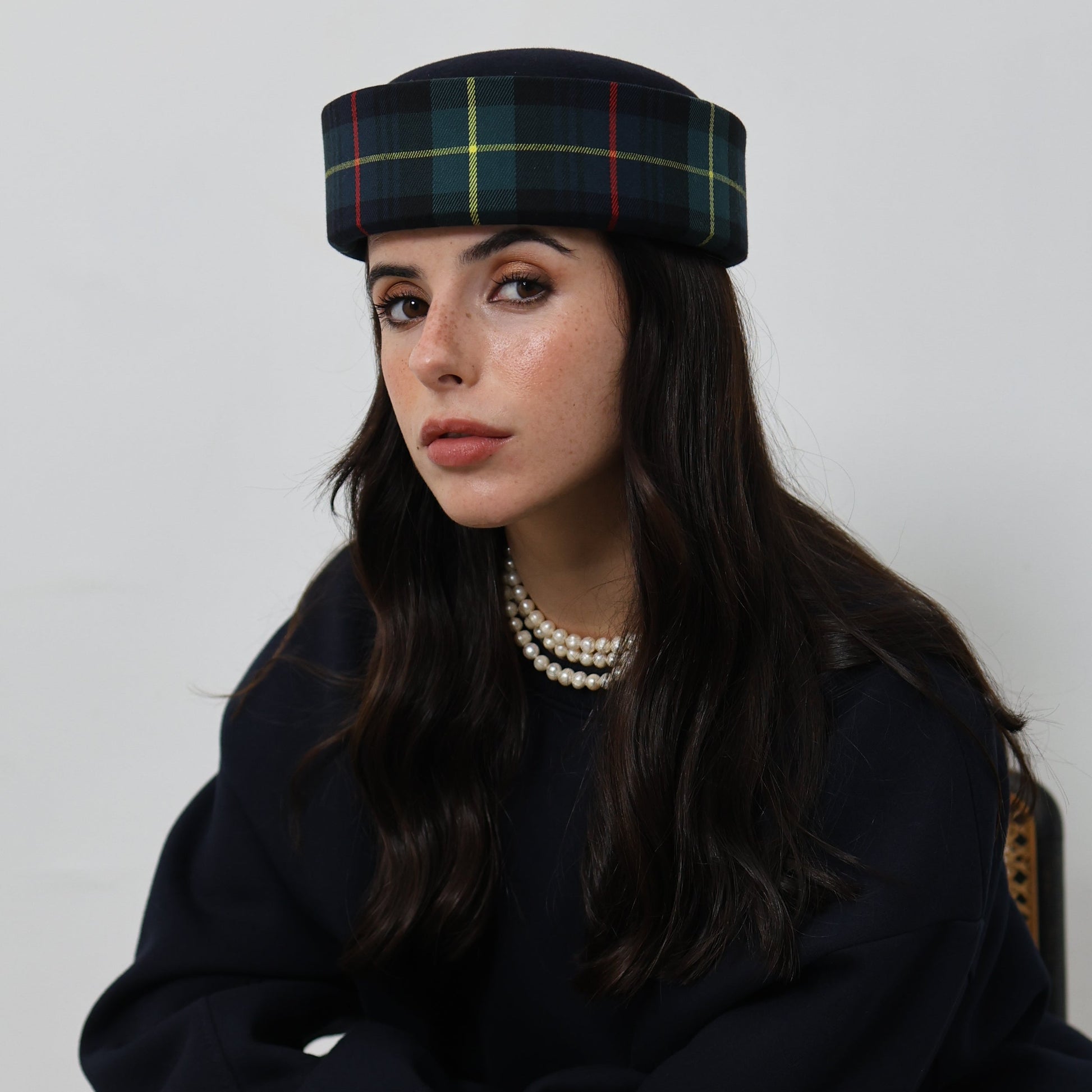Chapéu em tecido escocês verde e azul tipo pillbox