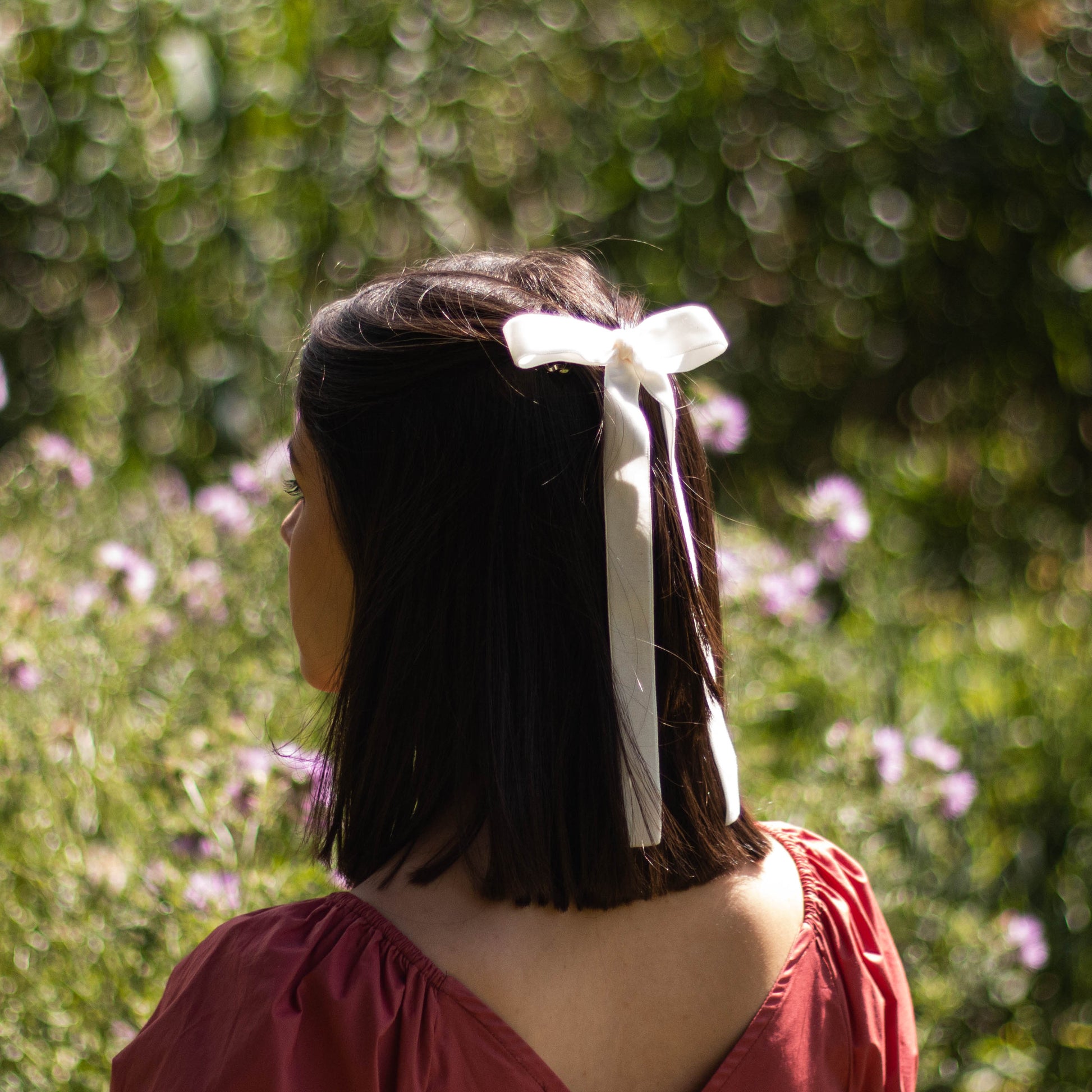 Laço com pontas compridas (20cm) em veludo na cor off-white.