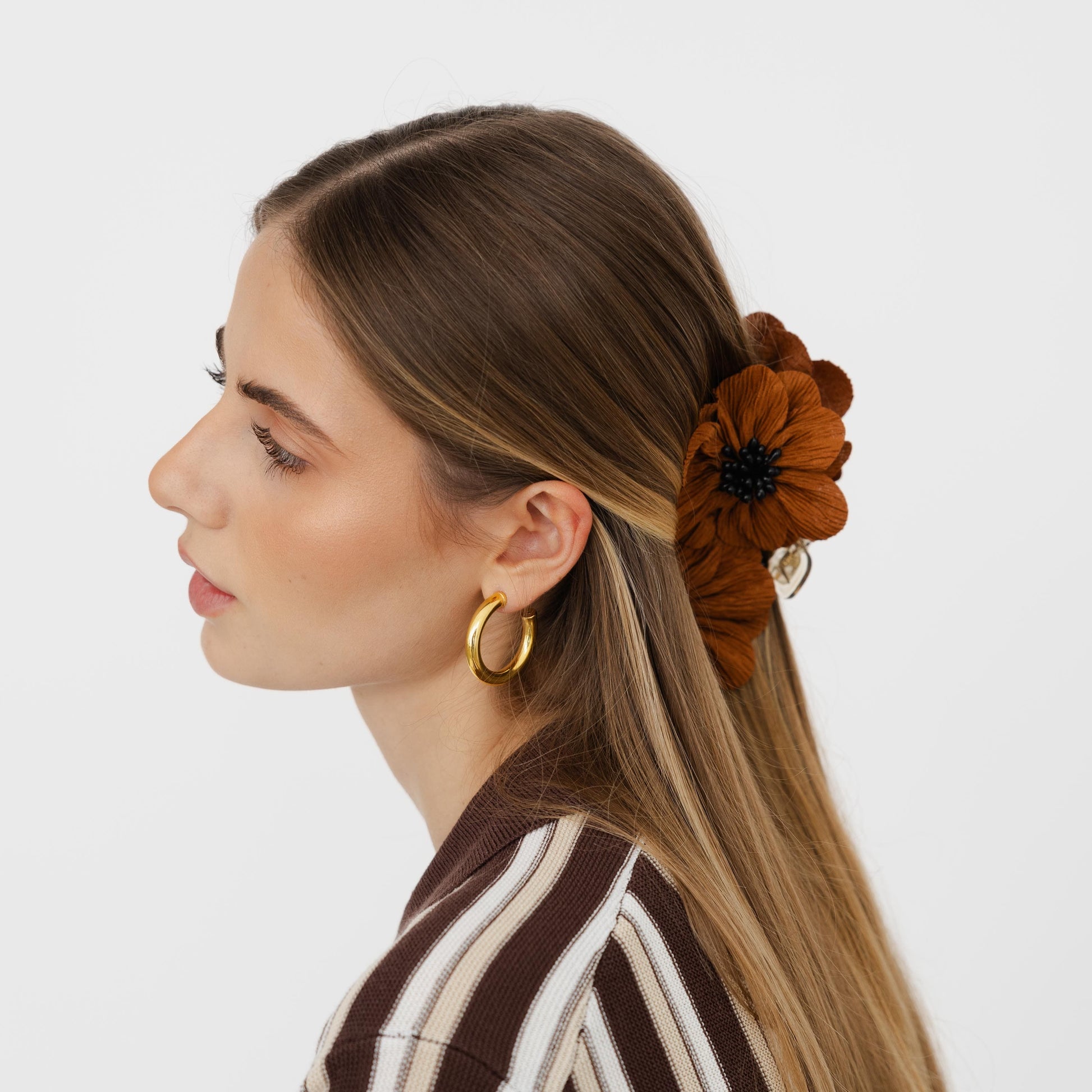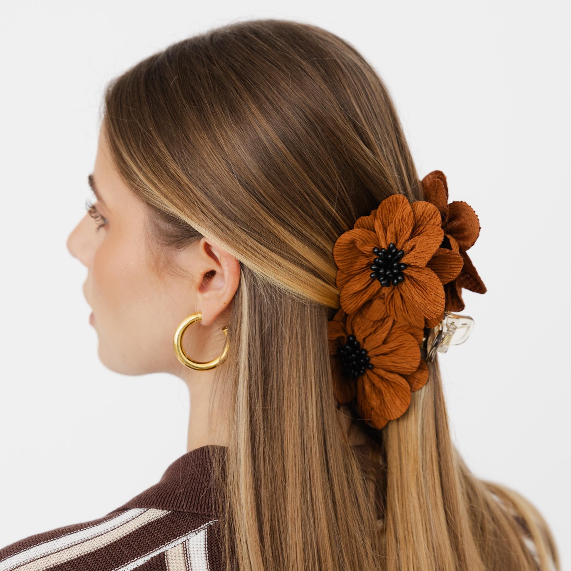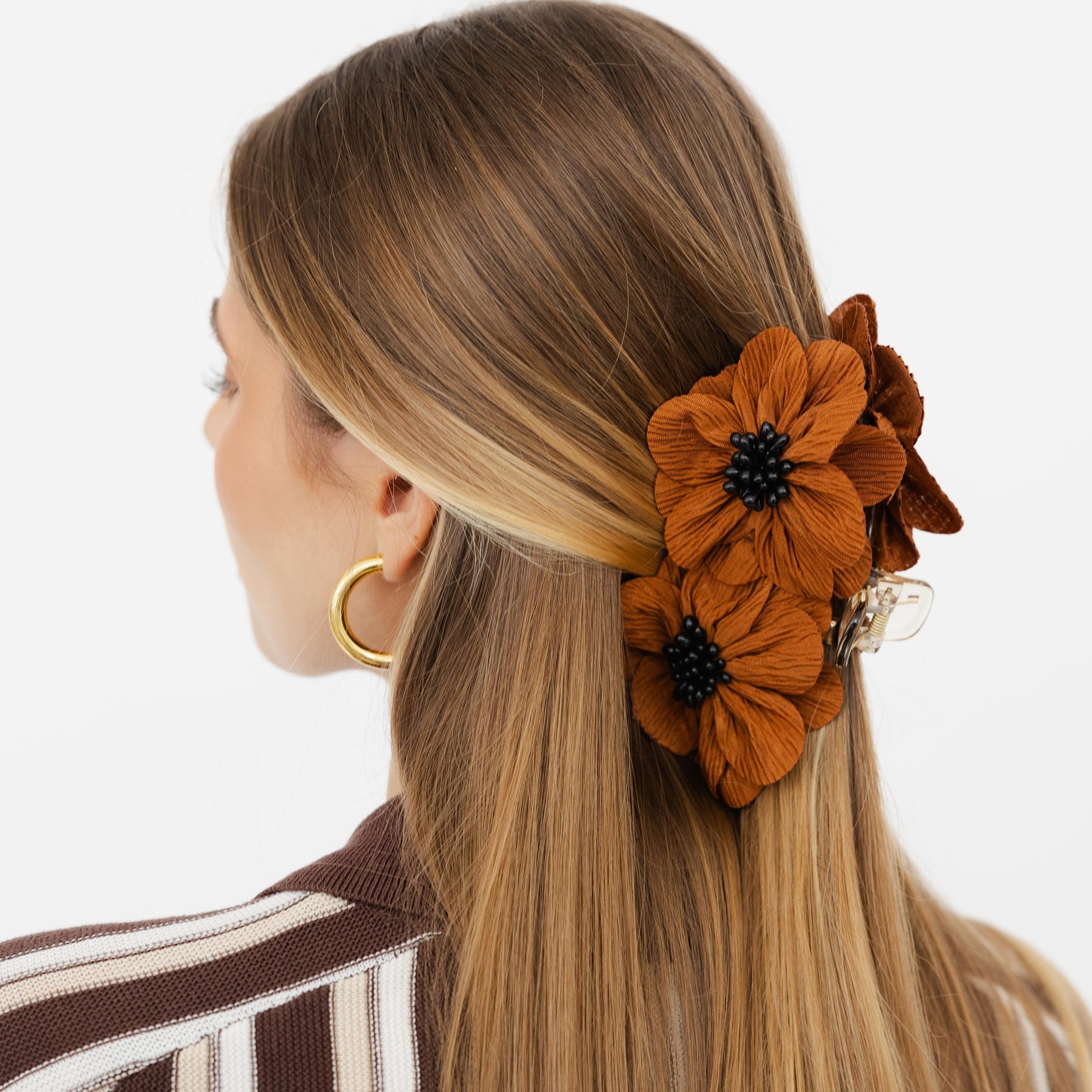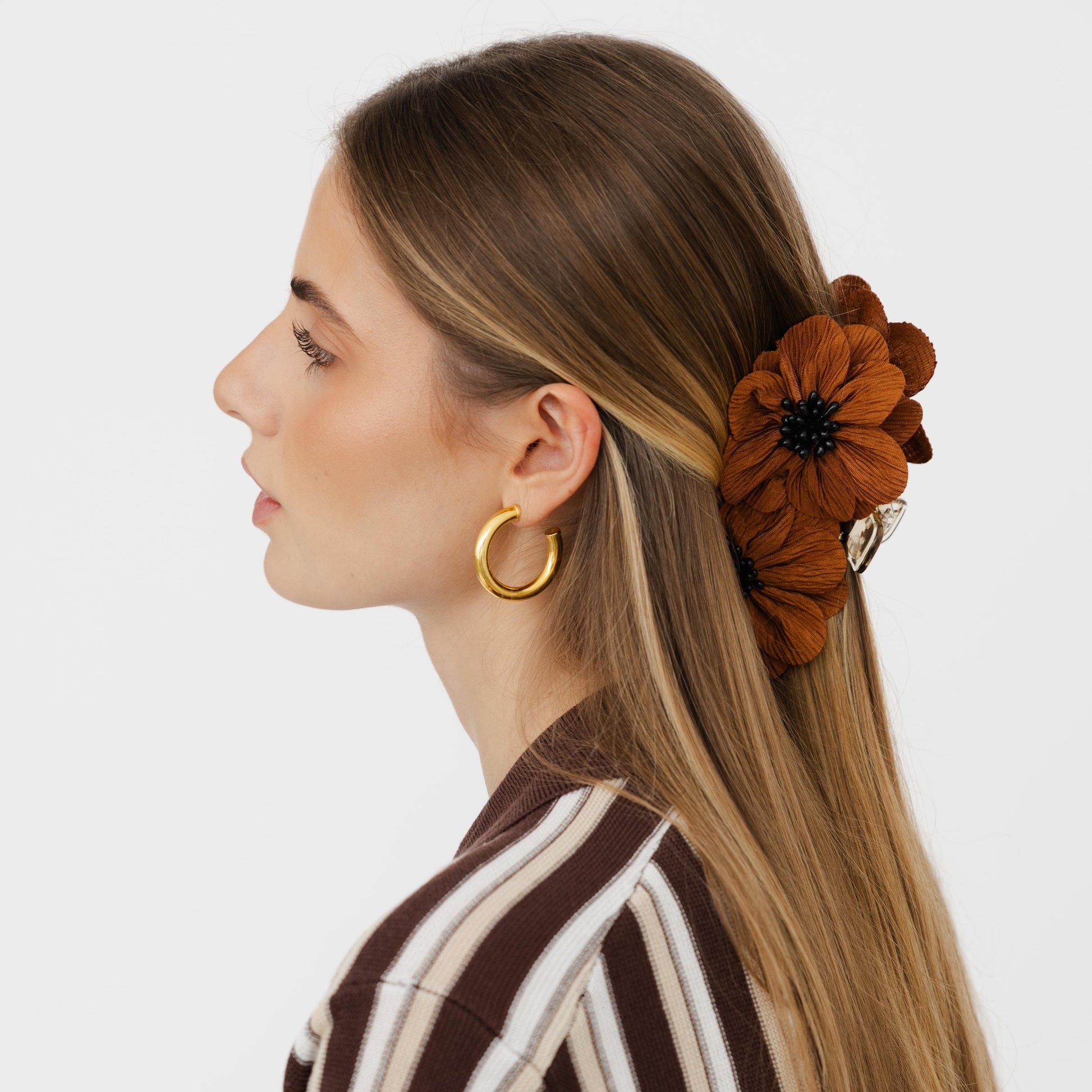 Mola com 4 flores papoilas na cor terracota. Tamanho da flor 4cm.