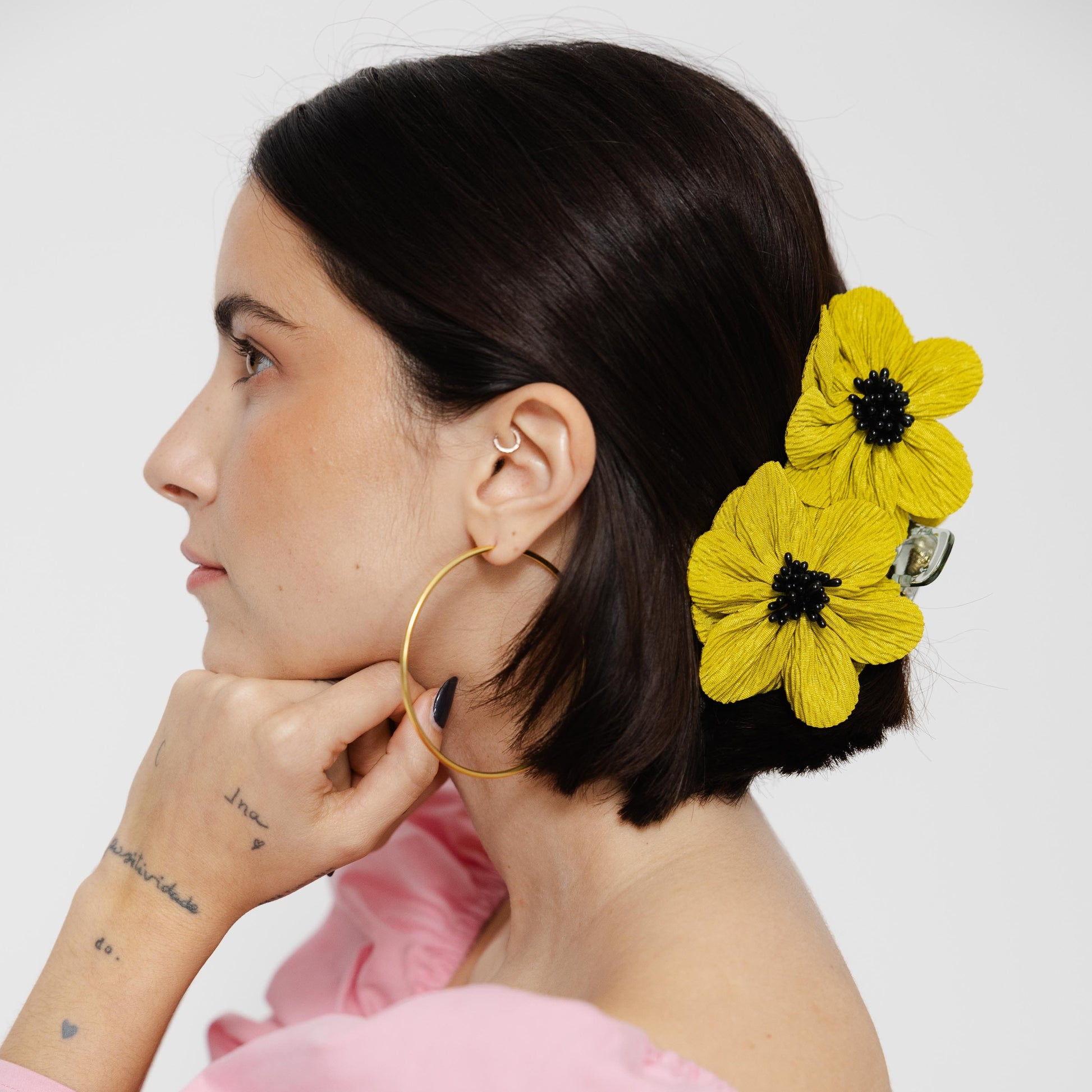 Mola com 4 flores papoilas na cor verde lima. Tamanho da flor 4cm.